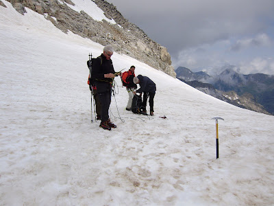 Diumenge dalt de l'Aneto, pluja i boira, poca visibilitat i força neu a la glacera, amb grampons... de les vegades que he trobat menys gent.